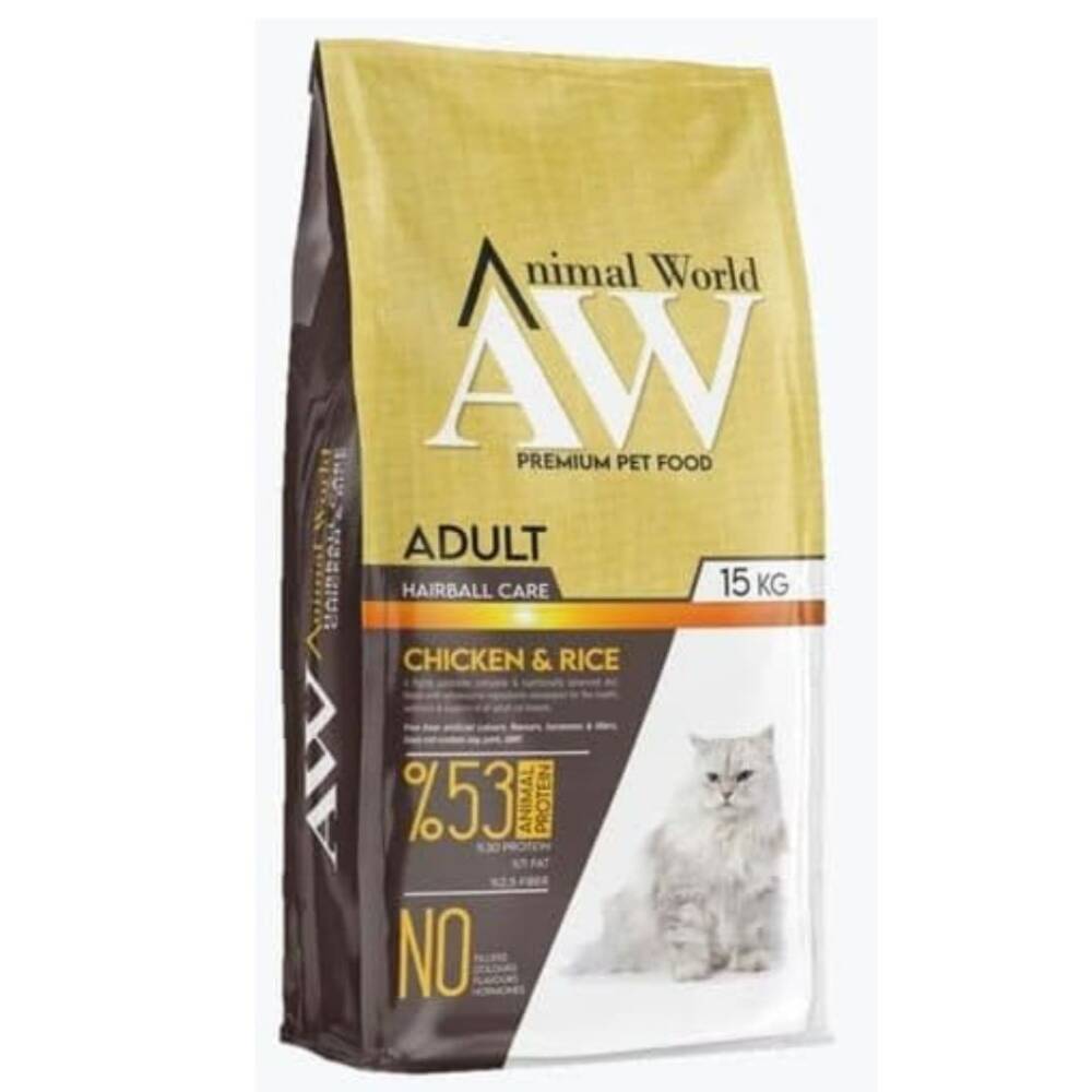 ● Animal World Hairball Tüy Yumağı Önleyici Tavuklu Kedi Maması 15 kg, tavuk aroması ile kedinizin damak zevkine hitap eder.