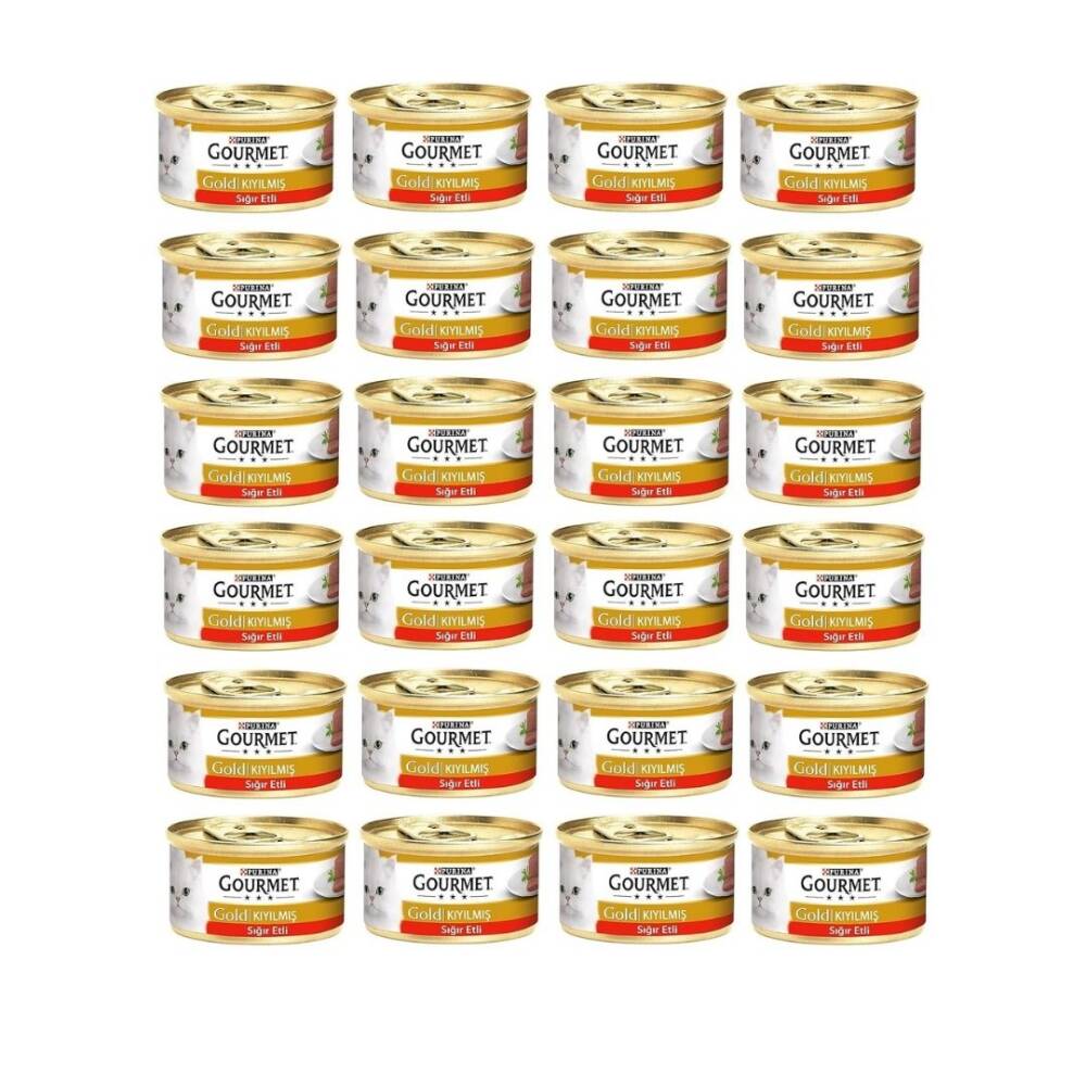 Paket içerisinde 24 adet 85 gram Gourmet Gold Kıyılmış Sığır Etli Yaş Mama bulunmaktadır.